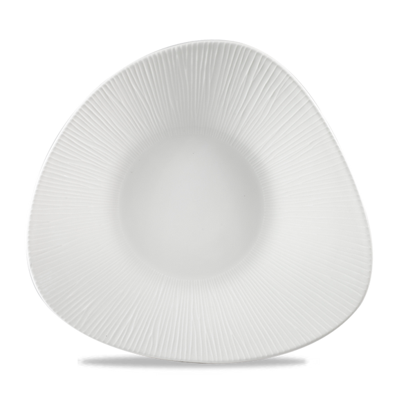 Bamboo White Porcelain Triangle Shallow Bowl 8 1/4"