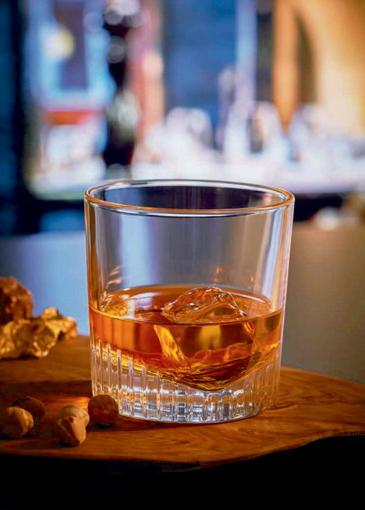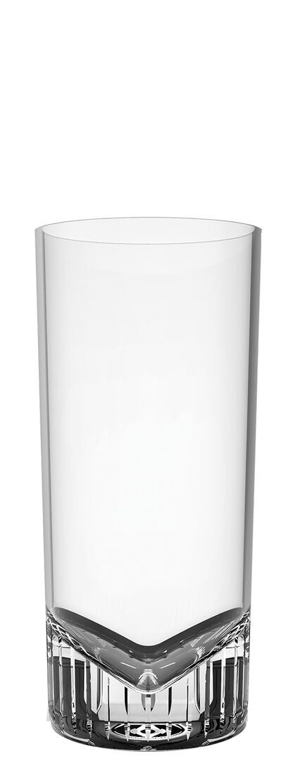 A heavyweight Crystal tumbler collection with extreme clarity and dramatic V shaped base emphasised with deep vertical cuts.