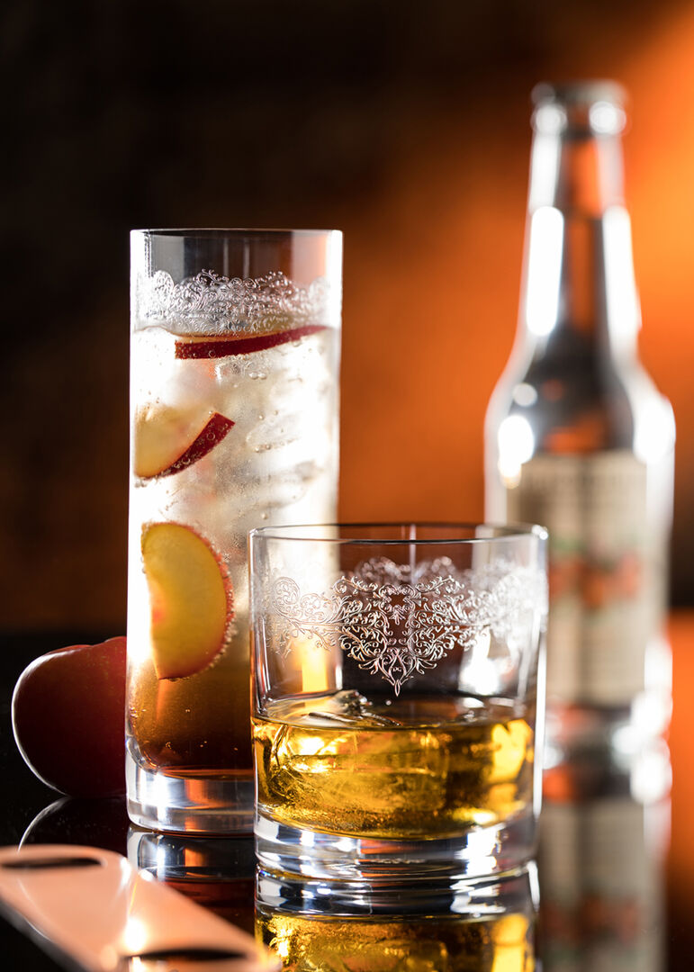 Beautiful fine crystal shapes delicately etched with a classic pantograph design, a little luxury everyday.