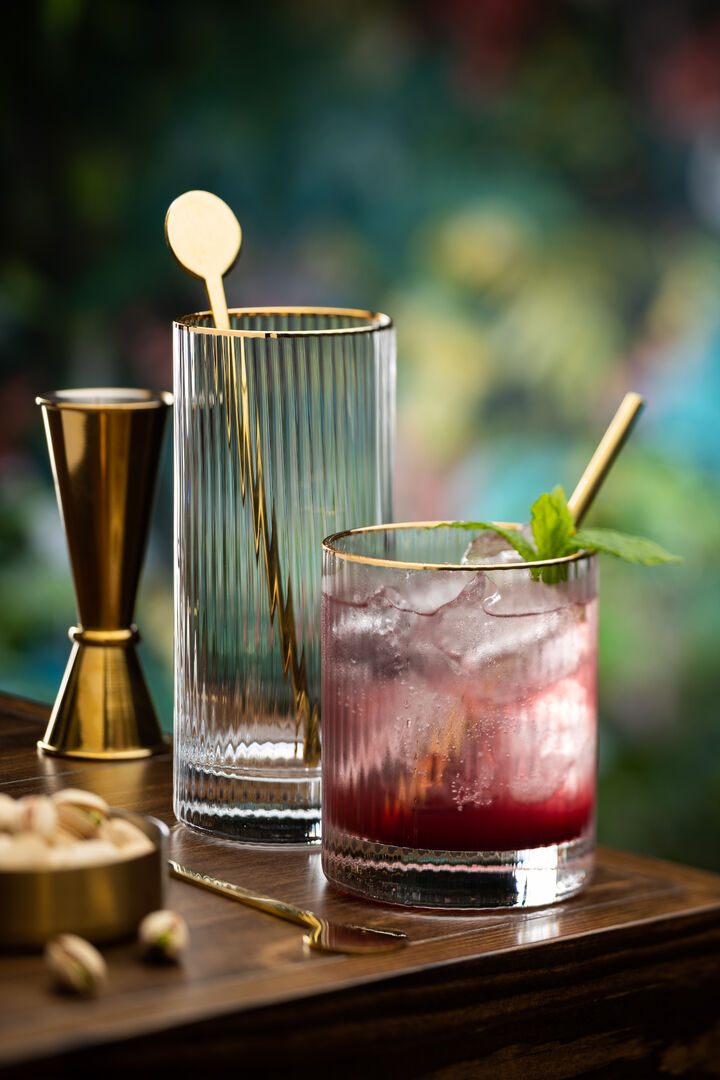 The popular Hayworth range is achingly glamorous, the vertical optic enhances this cocktail collection, giving the pieces stunning presence. Ready for a close up at any bar.