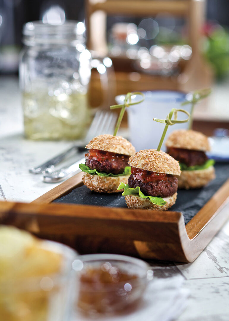 Acacia Wood provides interesting and versatile opportunities for food presentation. This Reversible Board can be used flat with a slate (CT0044) or as a riser with vessels in each of the three indents. Acacia wood is not dishwasher safe and should not be soaked in water. Can be used with CT0044. The indents can hold a selection of items including M10001, F91016, M15006 and F91010.