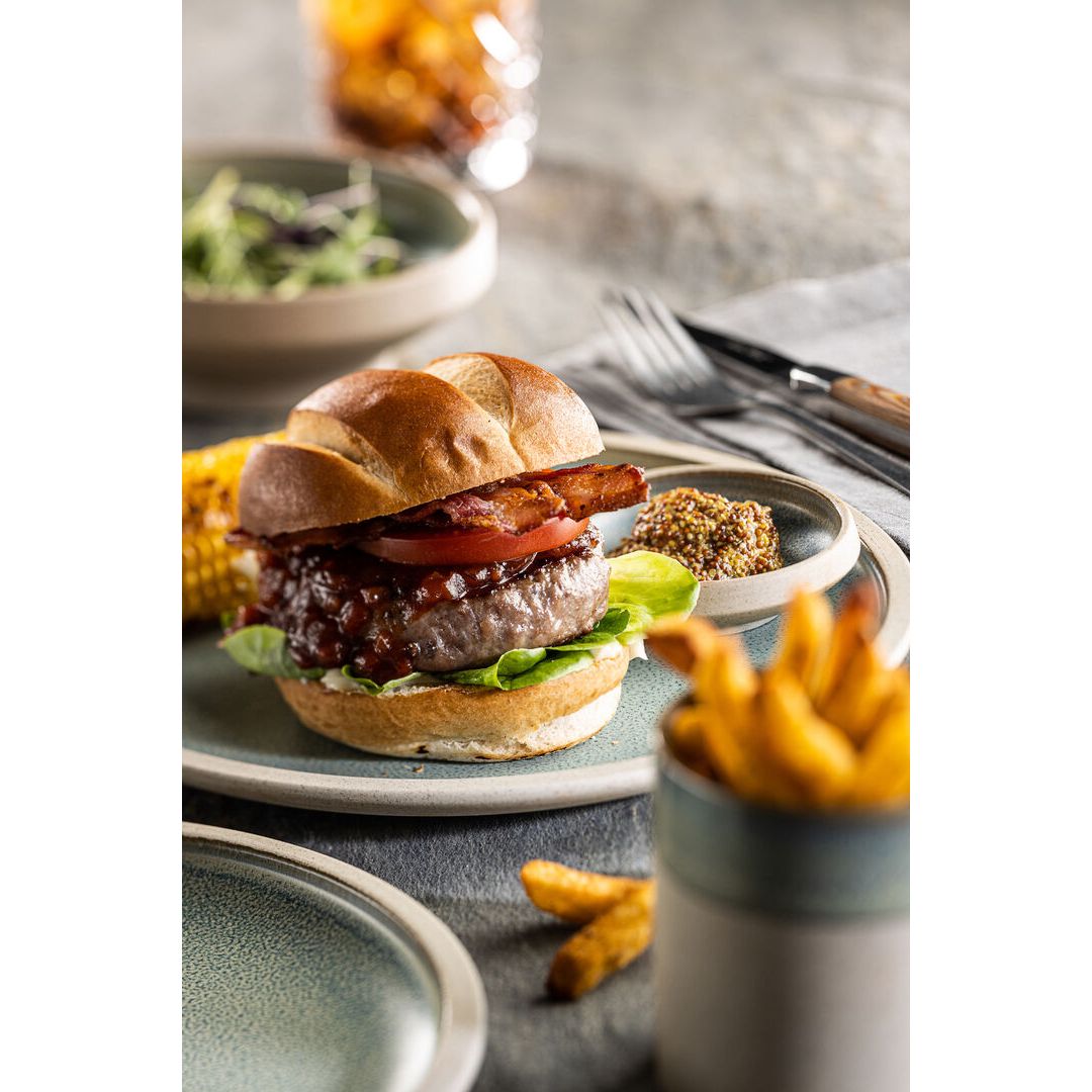 A dappled Blue/Green reactive glaze combines with the neutral semi-matt exterior of Arbor to evoke the colours of the shoreline.