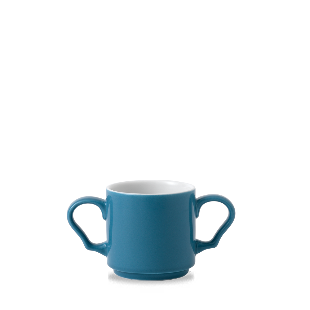 Introducing the Art De Cuisine Future Care Blue Glaze Double Handled Mug 10oz, the perfect blend of functionality and style. This specially designed ceramic mug not only adds aesthetic value to your drinkware collection but also promotes independence and supports wellbeing. With its wide base, excellent stackability and storage capabilities, this mug is an ideal choice for everyday use.