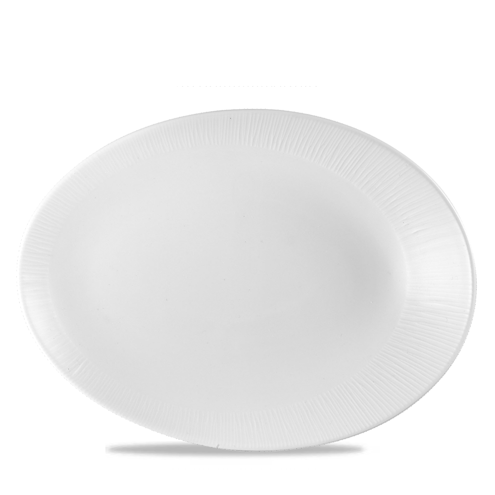 Bamboo White Porcelain Oval Plate 13 1/2"