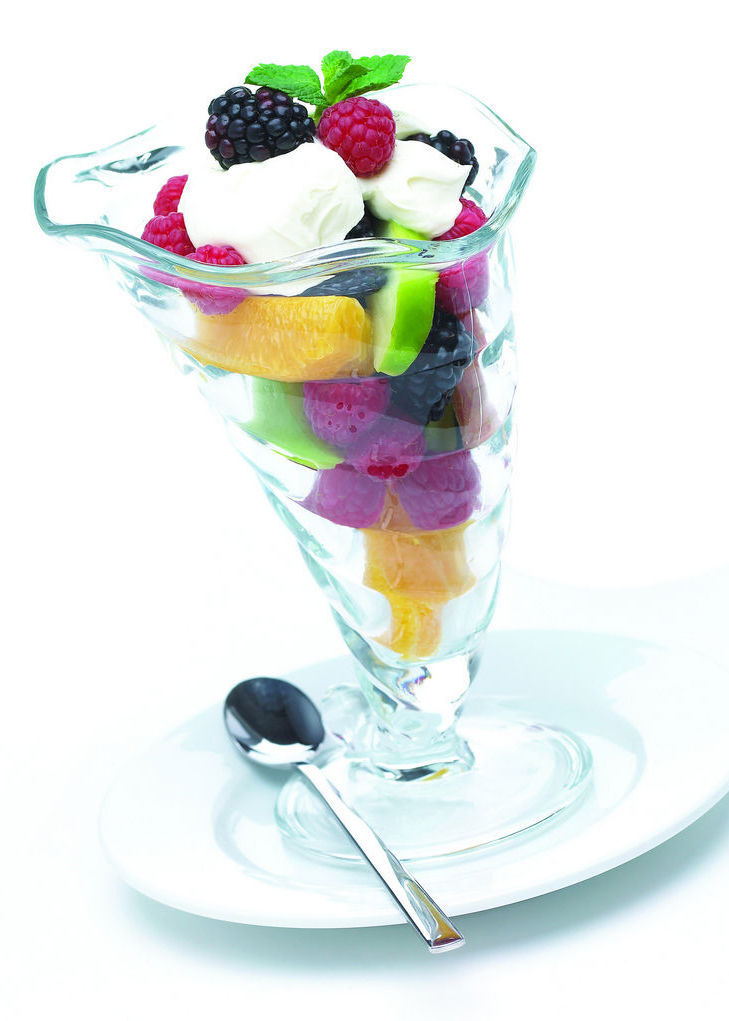 Based on the traditional cornucopia design this Cabana dessert dish is sure to be the star attraction of any table setting. Perfect for fruit cocktails, layered desserts or ice cream.
