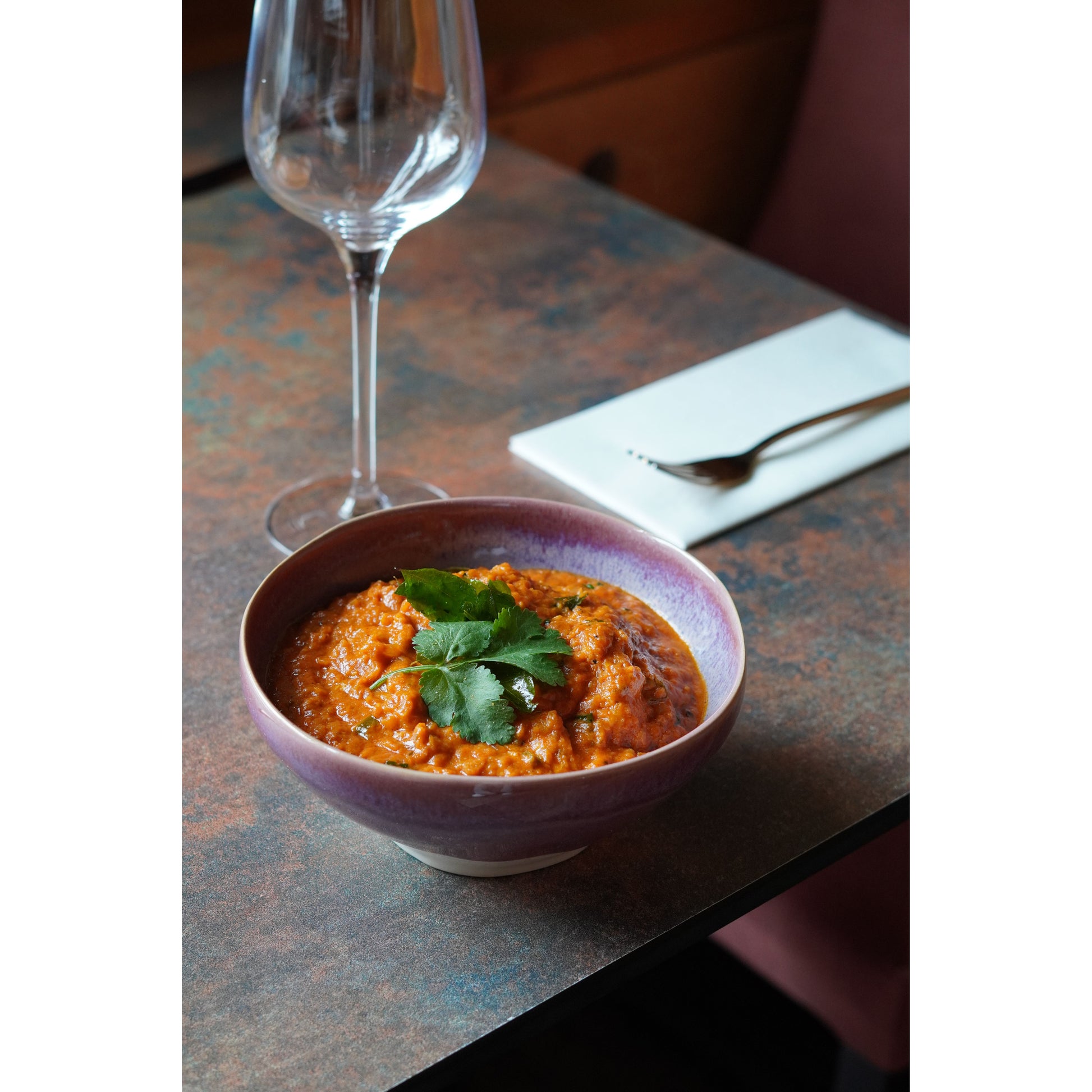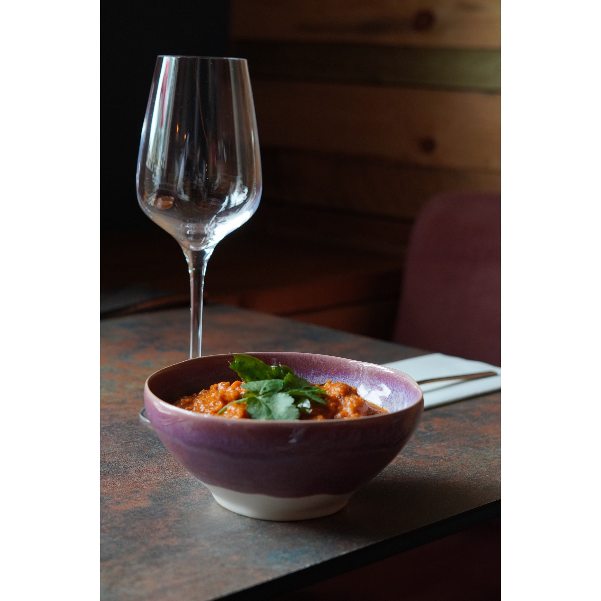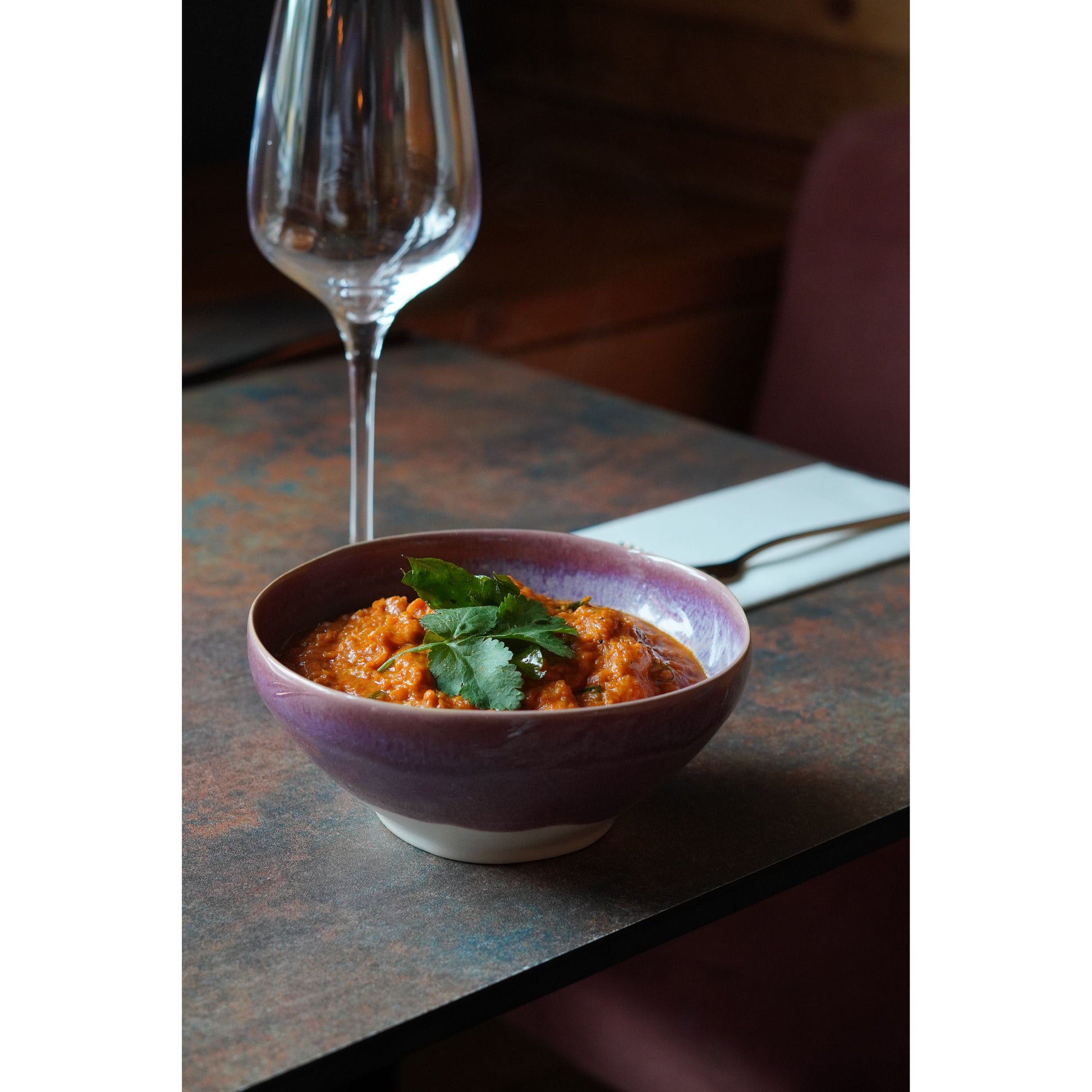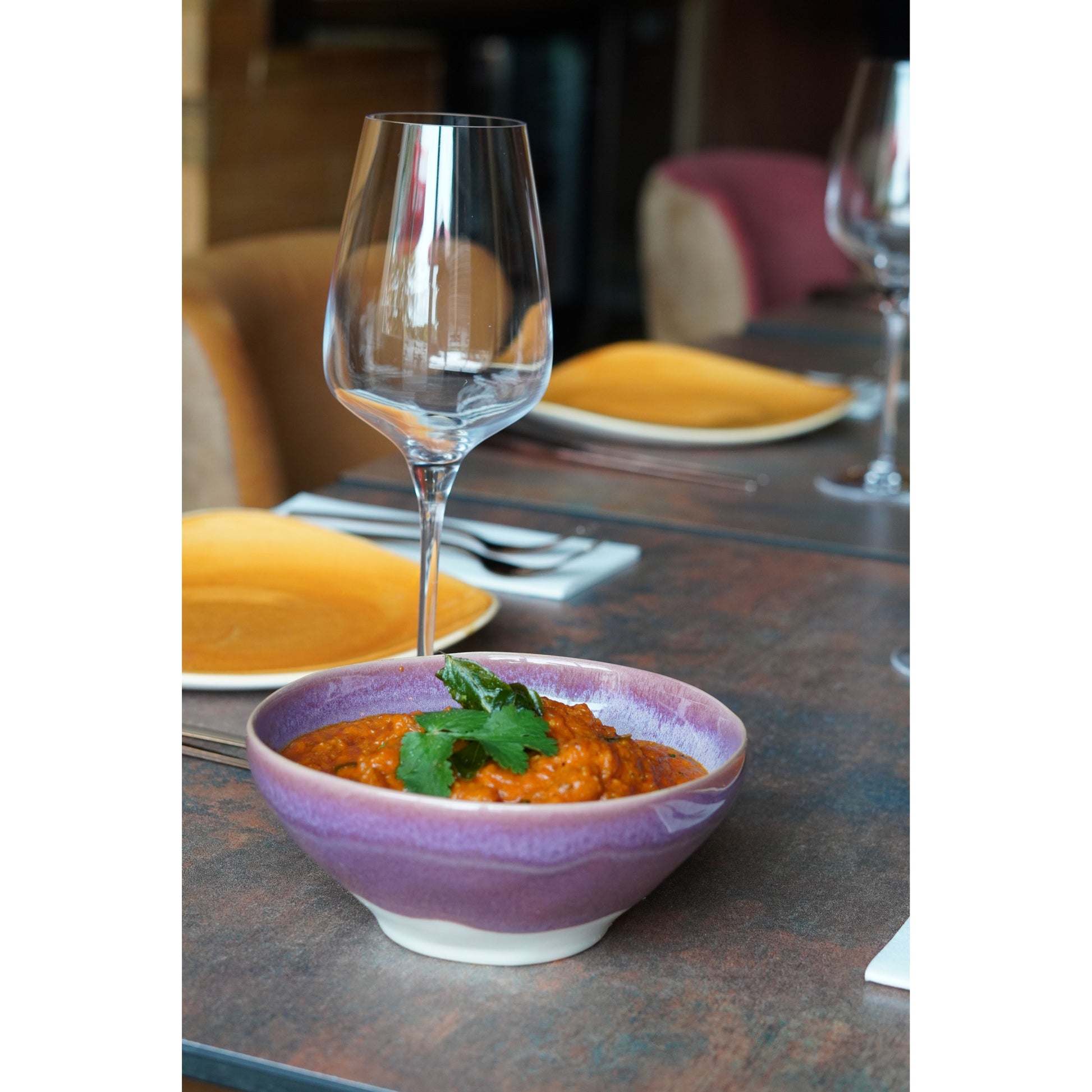 Introducing the "Californian Purple Shoreline Stoneware Organic Bowl 16cm Dia x 7cm H / 650ml" from Natural Concepts by Bespoke 77. This stunning bowl captures the essence of the picturesque Pfeiffer Beach in California, where the vibrant purple color is a result of the erosion of manganese garnet from the nearby hills.