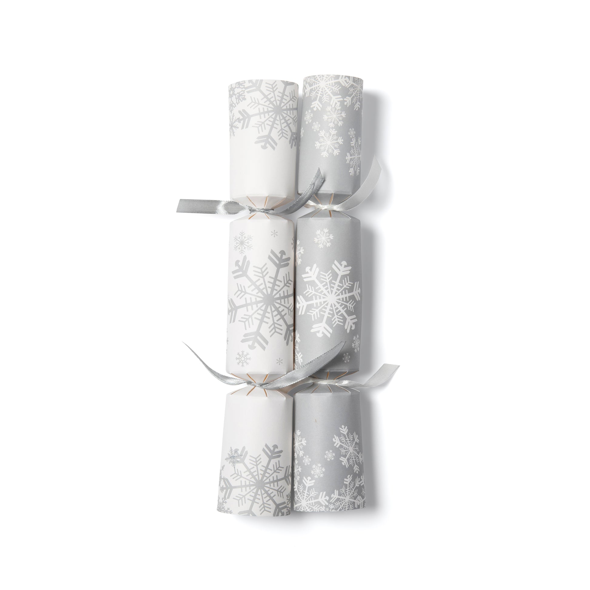 Eco Friendly Christmas Crackers 12 Inch -Deluxe Snowflake Print - White/Silver