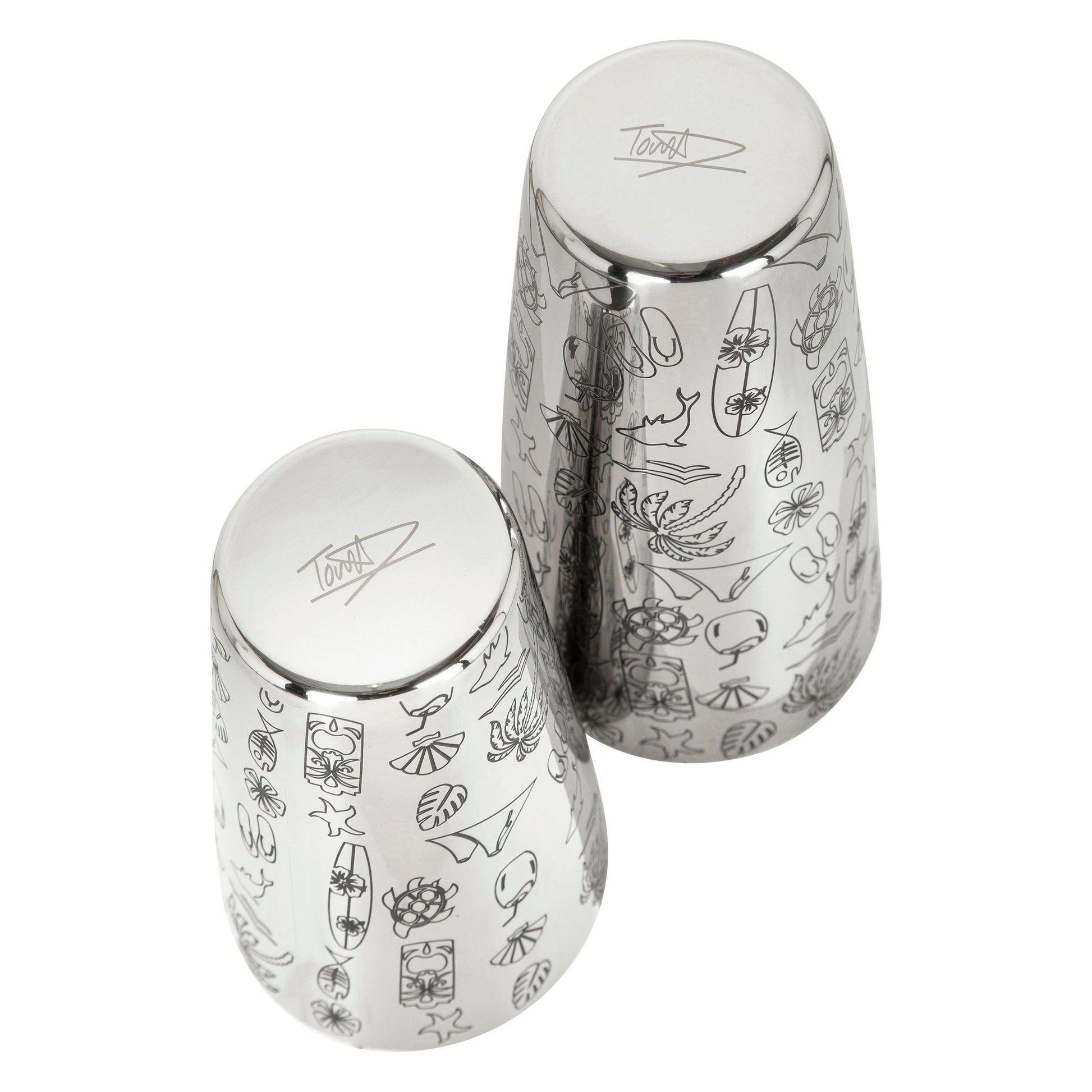 Create tropical cocktails with flair using the Tiki Engraved Shaker Set. Featuring a unique engraved debossed Tiki styling, this shaker set adds a touch of exotic charm to your mixology tools. Shake up delicious drinks for your next luau or tropical party with this eye-catching set.