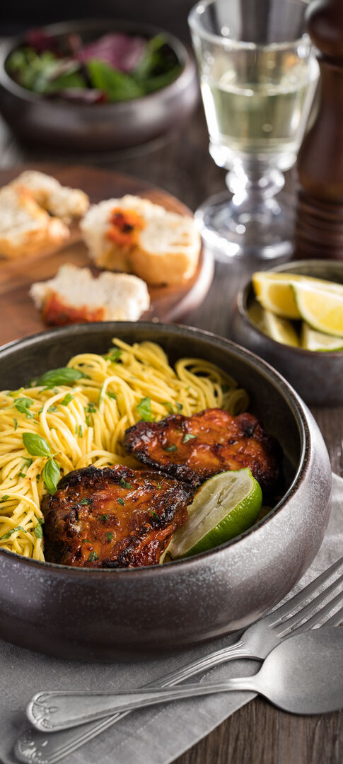 The gently curved shapes of this Vitrified Porcelain range along with a dappled interior and rich warm outer bring a casual style to the serve.