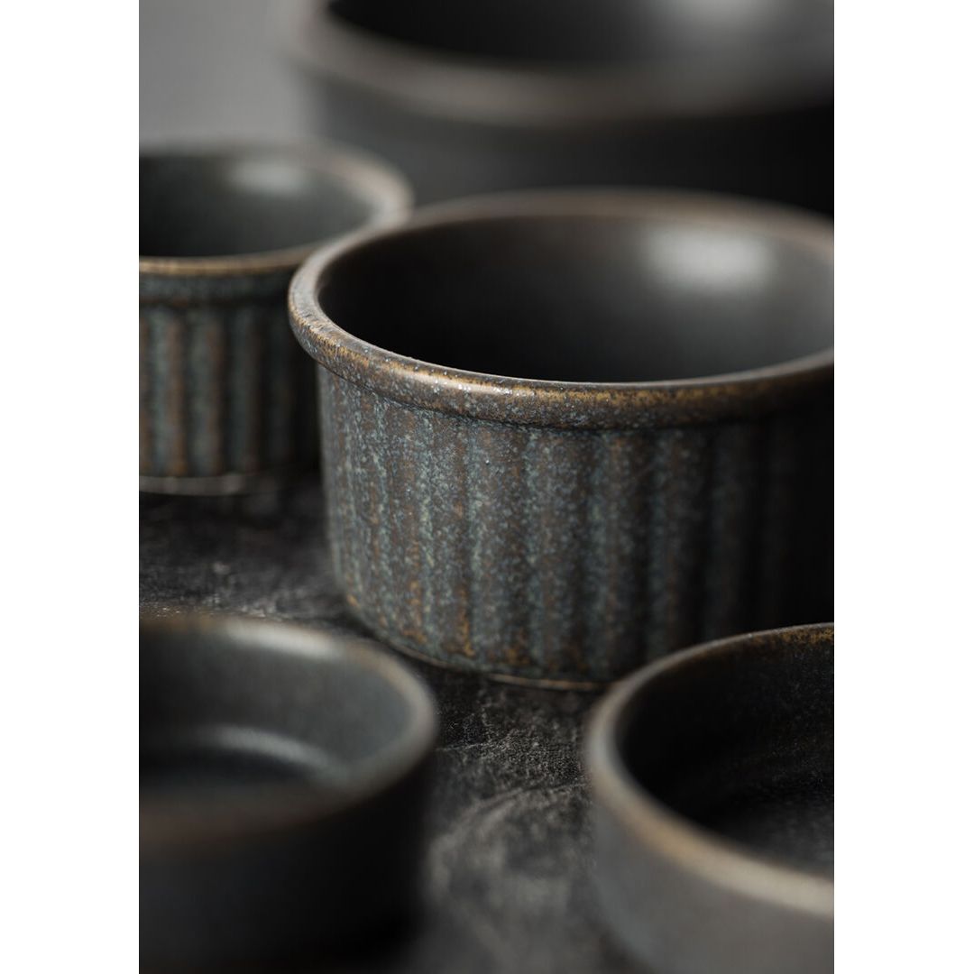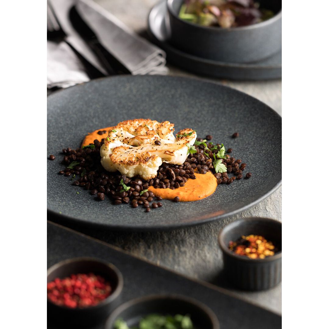 Murra references the luxurious ceramic vessels created using semi-precious materials by the artisans of ancient Rome. With twenty five items in each of the five colourways it’s never been easier to personalise the presentation of food and bring individuality to any venue. Part of the Murra Collection the Ash colourway is a gloriously dark canvas to showcase food. Each piece displays individual characteristics within a reactive glaze.