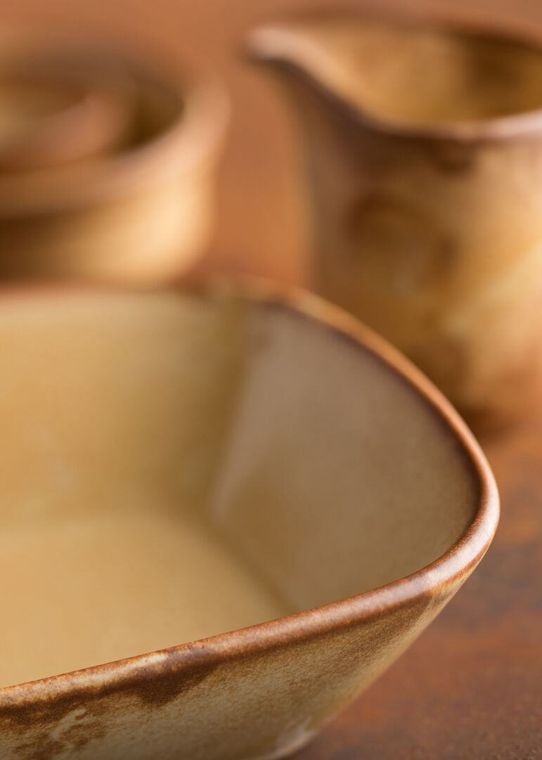 Murra references the luxurious ceramic vessels created using semi-precious materials by the artisans of ancient Rome. With twenty five items in each of the five colourways it’s never been easier to personalise the presentation of food and bring individuality to any venue. Part of the Murra Collection, Honey features washes of gloriously warm golden colour. The hand finished reactive glaze ensures each piece is as unique as it is beautiful.