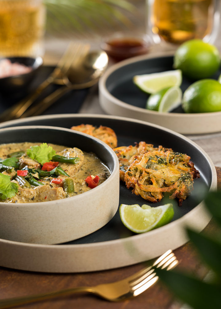 Omega combines contemporary design and a natural mottled outer wall with a dramatic dark interior. A perfect foil for your dish.