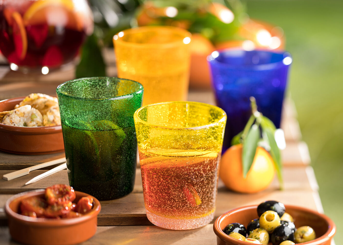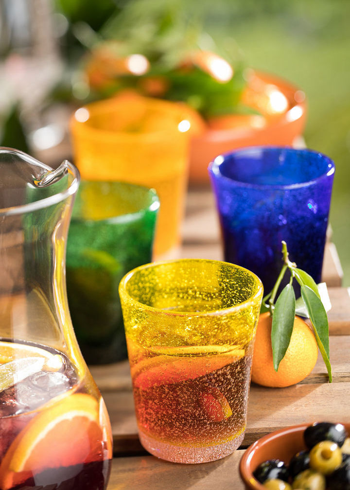 Bold and beautiful these handmade tumblers come in a variety of colours and feature an almost effervescent bubble texture, making each glass unique.