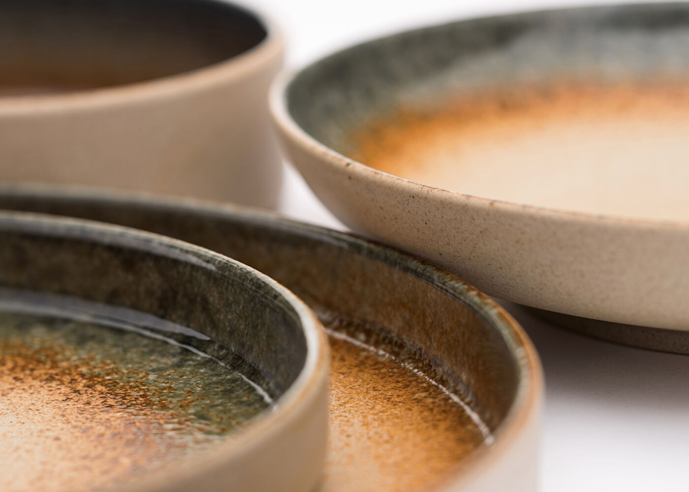 The rich autumnal colours of Saltburn bring to mind those magical places where land meets sea, rugged and welcoming in equal measure. This capsule collection is based around contemporary walled plates, combining simple shapes with a reactive glaze.