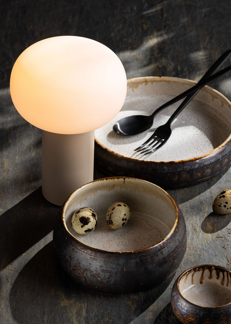 An ideal way to create a warm ambiance in any situation, the frosted glass balloon radiates an invitation to gather and enjoy. Choose from two colour ways Corten and Sand.
