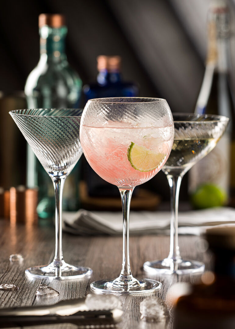 An extension to the popular Hayworth collection, the Twisted version takes the feature optic in a new direction and creates a shimmer of playful light across the surface of the glassware. Ready for a close up at any bar.